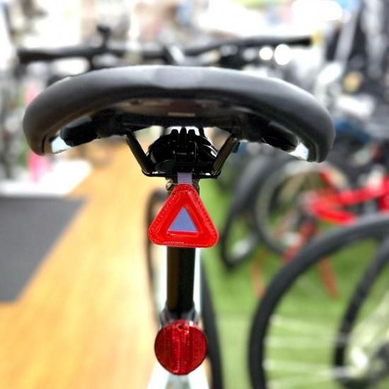 小さいのに反射力は抜群。アジャスター付きゴムストラップでサドル下はもちろん、